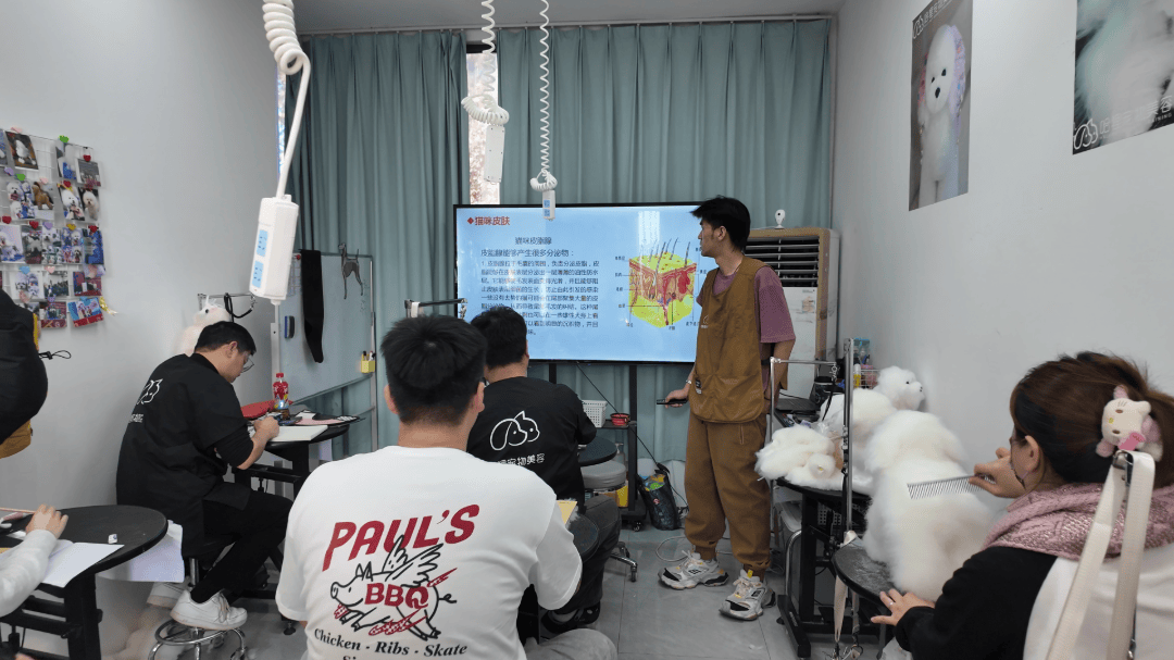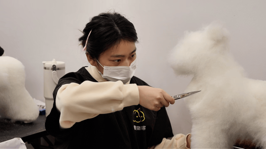 “在互联网发达的当下,宠物带来的社交属性和情绪陪伴价值不可替代,尤其是很多人把宠物当作孩子来养,养宠人群越来越多,宠物美容行业的需求也随之激增。”程功是哈狸宠物美容培训学校的负责人,他告诉记者,最初也是看到宠物经济的前景向好,发现行业内专业人才紧缺,且很多人想从事这份职业却没有入门渠道,于是决定在自己经营的宠物店内开设培训学校,手把手教零基础学员宠物护理、美容技能,既为行业输送人才,也为更多人提供就业和创业的机会。“我们是为CKU(世界犬业联盟FCI授权的中国成员组织)上海地区认证合作校,目前在我们这里参加培训的学员,每月大约有50人,总的已经有2000多名学员,因为属于紧缺行业,所以就业率是100%的。不少学员还在CKU和各类赛事拿到过好名次,成为了宠物美容界的明星‘Tony’。”谈及宠物美容行业,程功表示,宠物美容虽然门槛不高,但目前是前景广阔的技术行业,对学历和年龄没有特殊要求,只要认真学习,就能掌握一技之长。