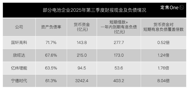 利润直接关系到现金安全。国轩高科(70%以上)、欣旺达(68%)、亿纬锂能(64%)的资产负债率均处于高位。