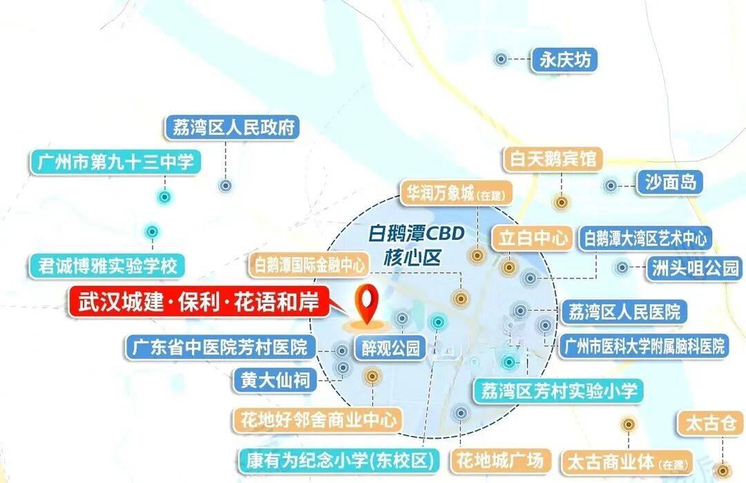 买房先看地段,这是楼市不变的铁律。保利·花语和岸的地段优势,早已被官方规划盖章认证。根据《广州市荔湾区国土空间总体规划(2021-2035年)》公示文件,荔湾区将构建“一核一带三平台”空间结构,其中“一核”便是白鹅潭商务区核心区,而项目正处于这一核心腹地,尽享12.5平方公里核心配套资源。